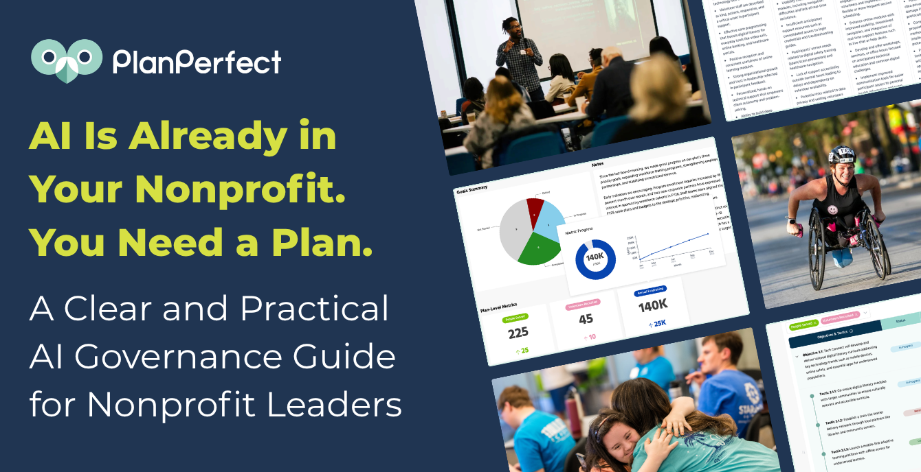 Most leaders have now seen these tools generate a passable donor email, create or summarize a board packet in seconds, or, with well-trained software platforms like PlanPerfect, be a tremendously successful partner in producing, tracking, and implementing strategic and risk-mitigation frameworks. The question is no longer whether to use these sophisticated technologies. It is whether your organization understands how they are already being used—and has put in place a plan and everyday practices to support them.