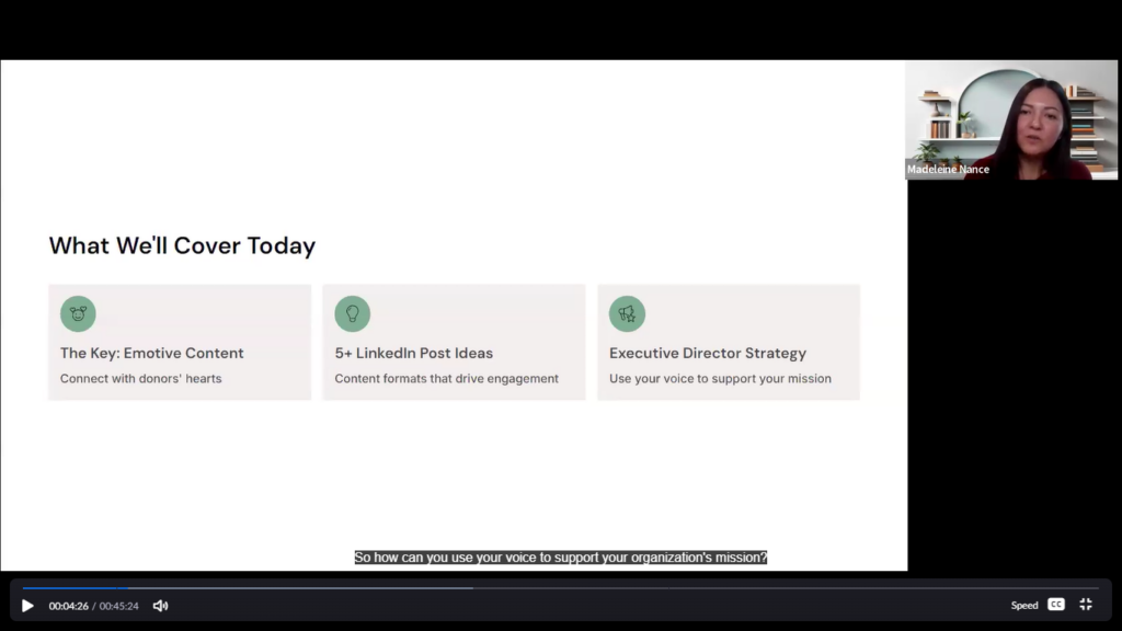 I recently presented a Tech Trends for Nonprofits webinar here at Nonprofit-Apps called LinkedIn 101 for Busy Nonprofit Professionals, where I walked through these ideas in more detail – including word-for-word examples of what each type of post looks like in action.